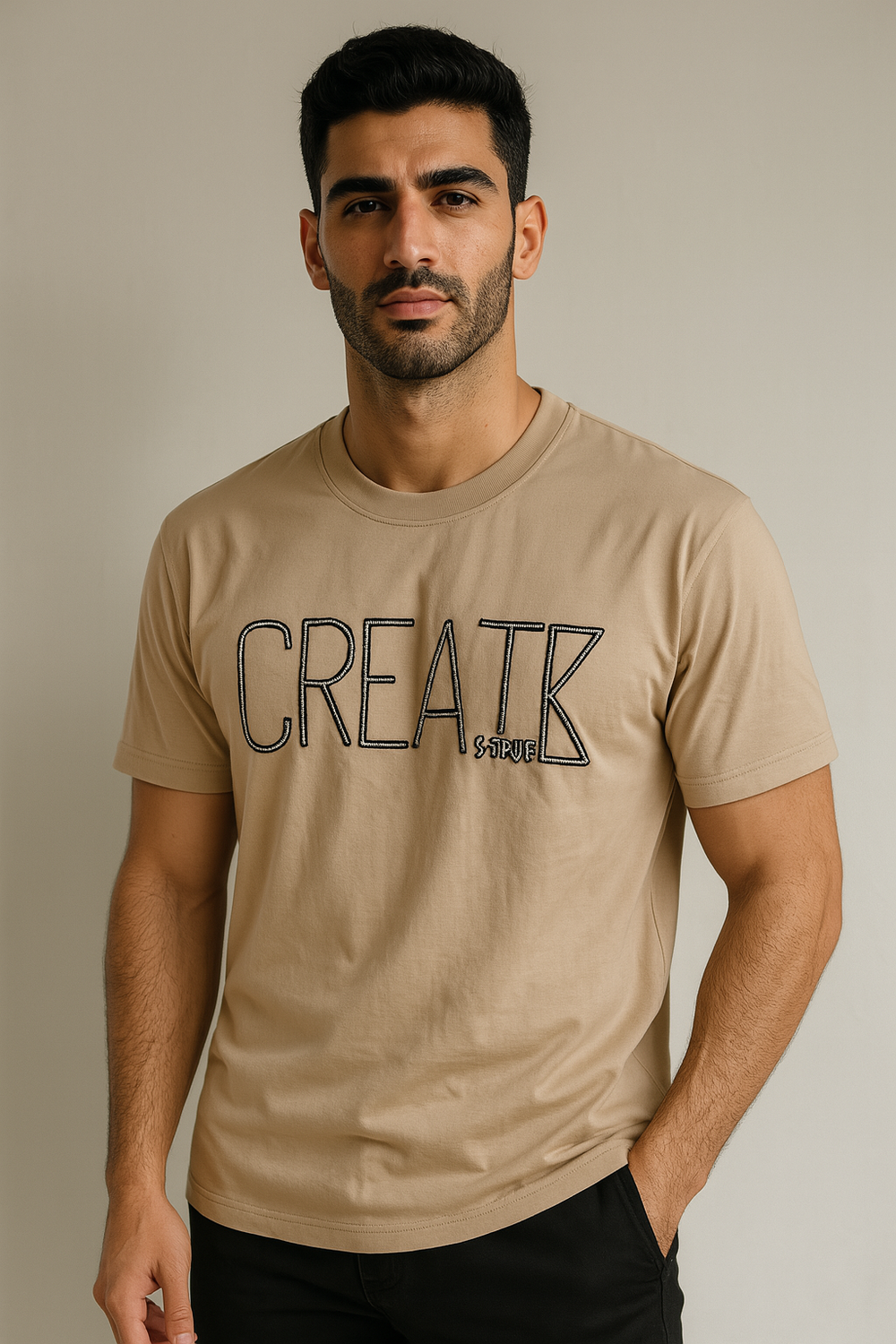 Express yourself effortlessly with the Graphic Slogan Tee by StayTrue – your go-to for laid-back, everyday style in the UAE. With its bold "CREATE" embroidery front and center, this tee celebrates individuality while keeping things cool and comfortable.